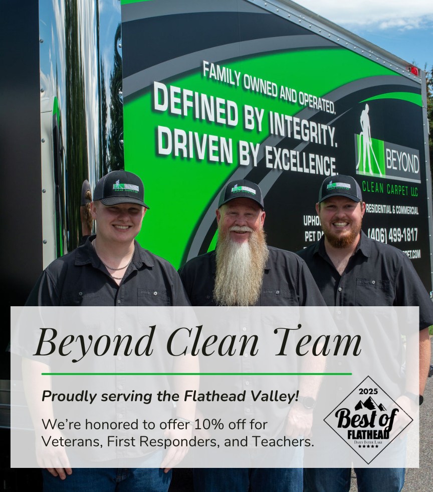 At Beyond Clean Carpet, we are more than just a carpet cleaning & floor care service; we are your dedicated partners in maintaining the cleanliness, health and aesthetics of your living spaces. As a local, family-owned and operated company deeply rooted in the Flathead Valley, we take pride in delivering reliable, high-quality, and affordable cleaning services.