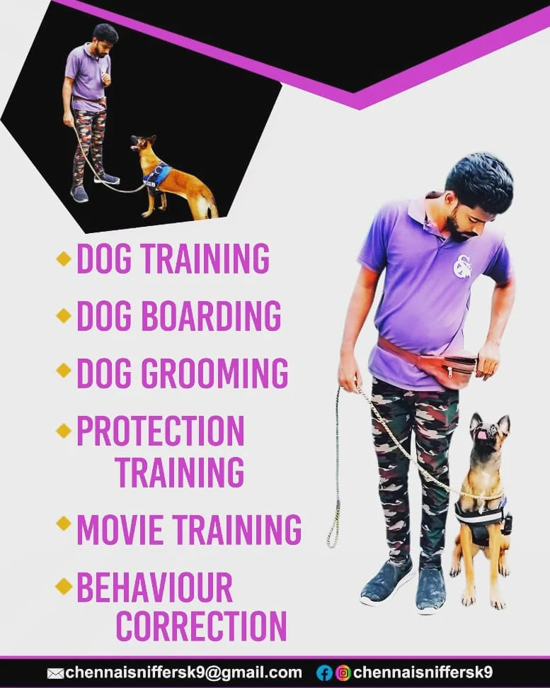 Chennai Sniffers K9 trainer is vastly experienced in all trades of dog training. Our trainer is internationally recognized for his excellent dog training skills. We are here from the past 25 years to serve your pets a better living. Bring your pet to Chennai Sniffers for their boarding stay and they'll have as much.