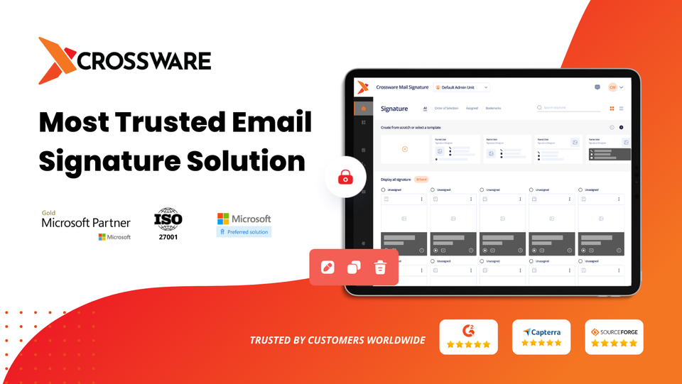 Crossware Limited - The perfect enterprise email signature management solution to create consistent and compliant email signatures across all devices and teams. Centrally managed and controlled from the Crossware platform! Most Trusted Email Signature Solution.