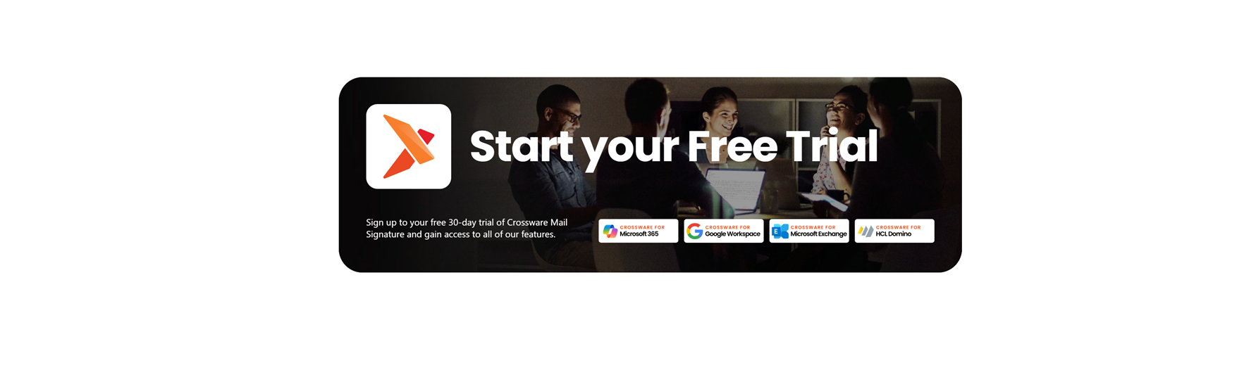 Crossware Email Signature is the world-leading centrally managed solution for email signatures for Microsoft 365, Google Workspace, Microsoft Exchange, and HCL Domino. Create and manage email signatures for as many employees as you need and maintain consistent email signatures across all devices. Creating a business email is a straight-forward experience even for those with little to no HTML knowledge. Making life easier for Marketing, IT, Legal and Sales Teams! Whether you are an organisation of 50 or 10,000, Crossware caters to the needs of every department in the organisation – saving time and increasing productivity!