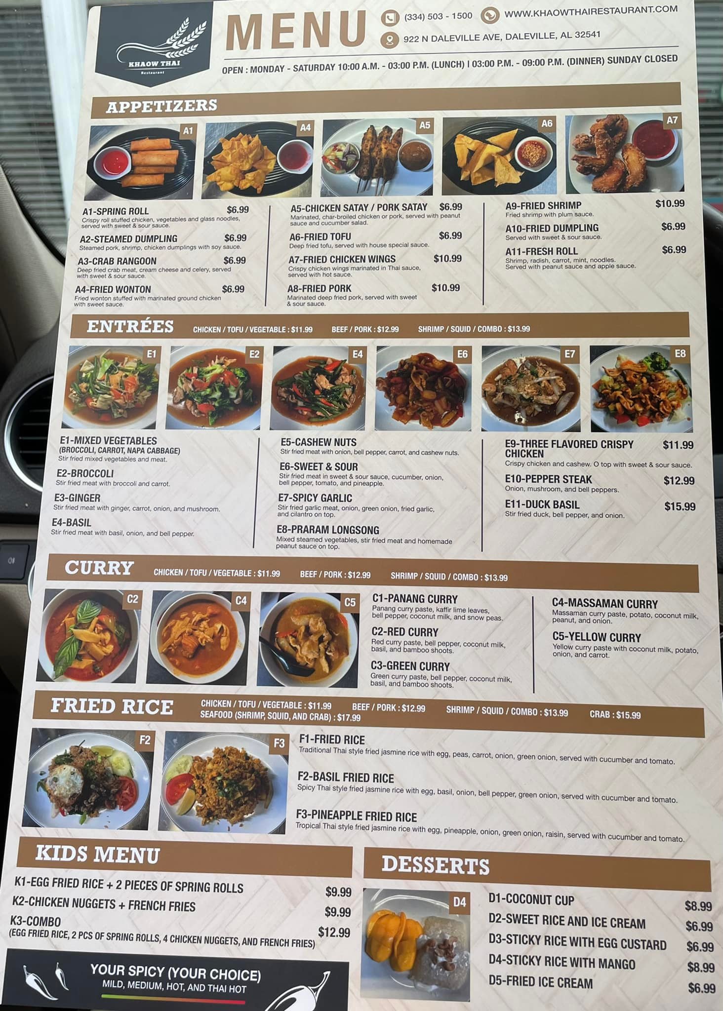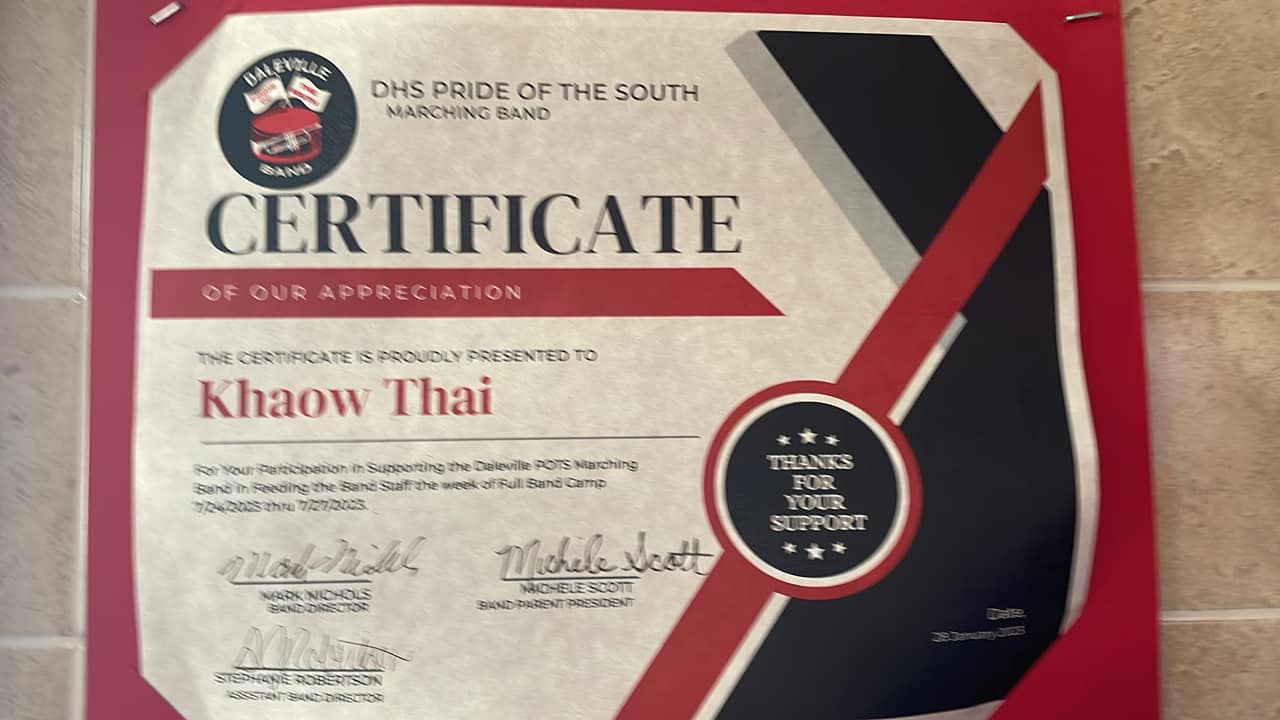 Khaow Thai Restaurant is an all day-every day Thai restaurant that brings Thai-dining to an upper echelon. By serving lunch, and dinner, the city of Daleville will now enjoy delicious Thai cuisine and exponential service catering to your needs. We welcomes families and friends to try our cultural and tasteful Thai meals. Whether you are in the restaurant or the comfort of one’s own home, we takes pride and joy, cooking, and serving food to their guest. Khaow Thai Restaurant brings Bangkok to Daleville.
